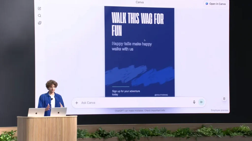 در دموی معرفی این قابلیت، کارایی آن به وضوح نشان داده شد. یک کاربر توانست با فراخوانی Canva، چندین پوستر تبلیغاتی دریافت کند و سپس بر اساس همان‌ها، یک فایل ارائه کامل بسازد. در مثالی دیگر، با کمک Zillow یک نقشه تعاملی از خانه‌های فروشی در یک شهر خاص ایجاد شد و کاربر توانست سوالات خود را در ادامه همان مکالمه از ChatGPT بپرسد.